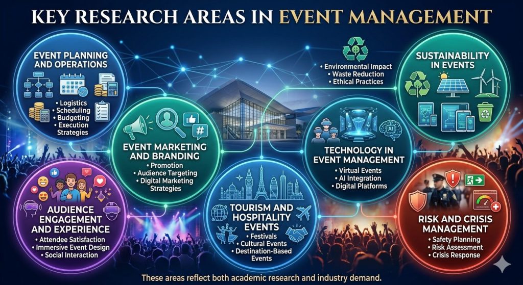 Event management is a multidisciplinary field. Understanding its core research areas helps you identify where your interests fit academically.