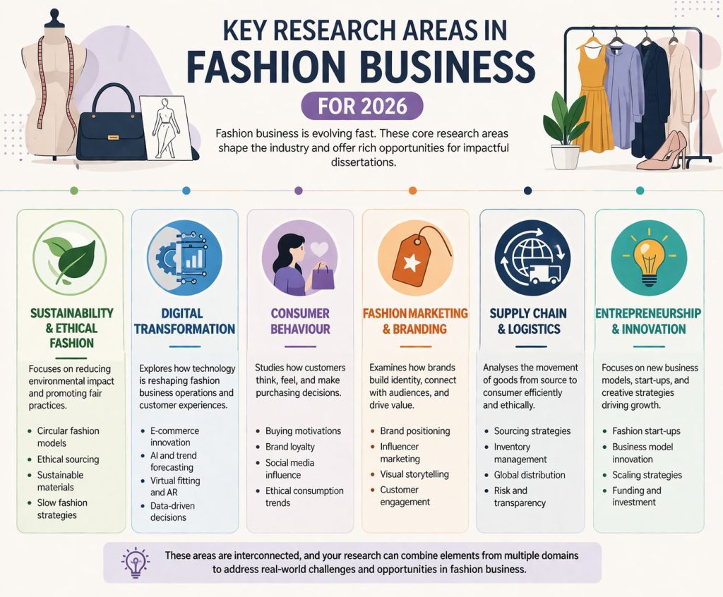 Fashion business is a diverse field that combines creativity with strategy. Understanding its key research areas will help you identify where your interests lie.