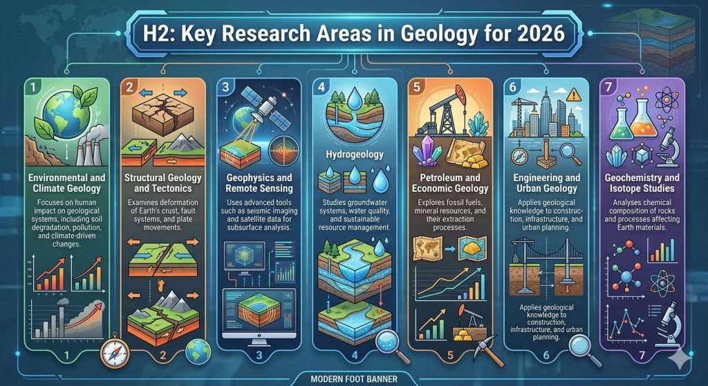 Geology research continues to evolve with global challenges and technological advancements. The following areas represent well-established and future-relevant domains: