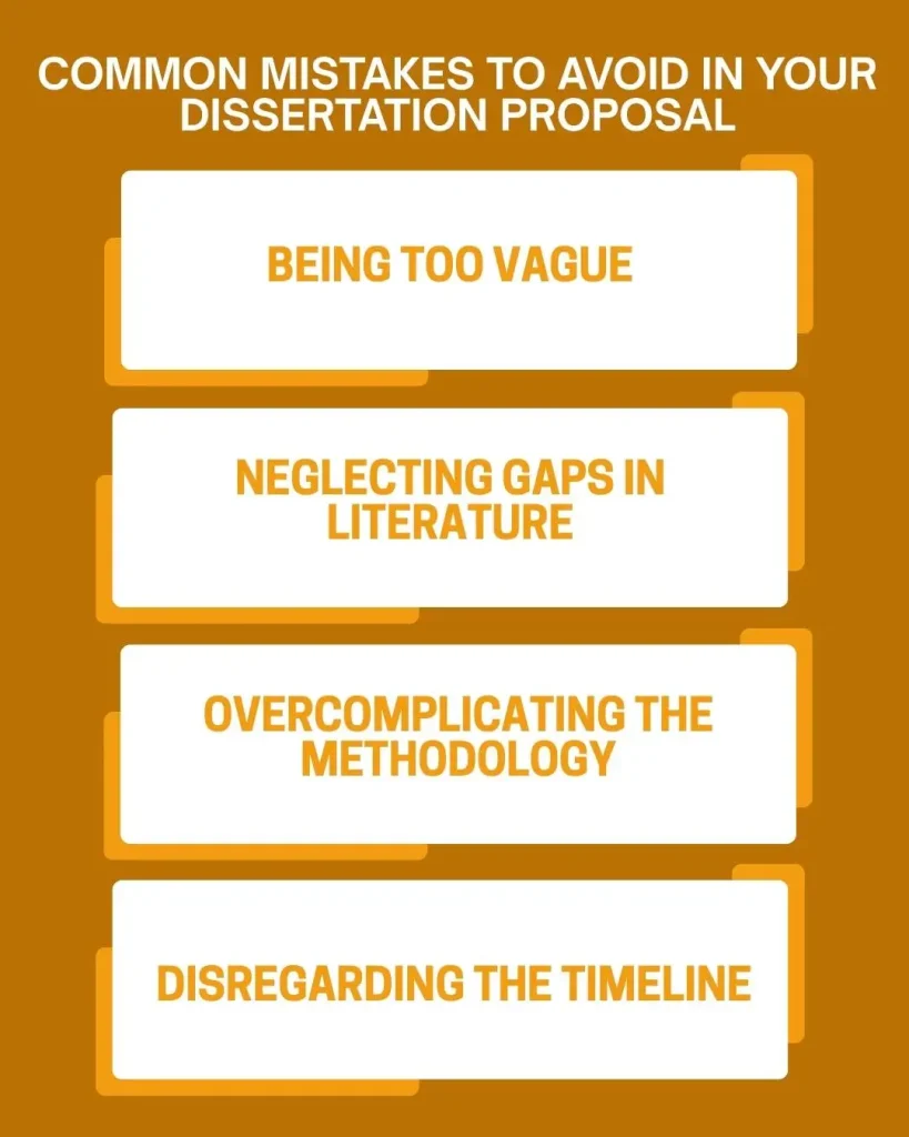 When crafting your dissertation proposal, it’s crucial to steer clear of several common pitfalls that could jeopardize your chances of getting approved: