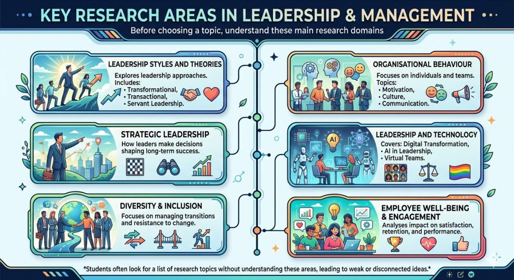 Students often look for a list of research topics in leadership and management, but without understanding these areas, they end up choosing weak or disconnected ideas.