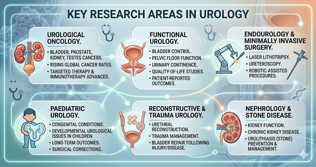 Before diving into individual topics, it helps to understand the major subfields within urology. These areas are grounded in established academic and clinical research, and they form the backbone of most urology dissertations at undergraduate, master’s, and doctoral level.
